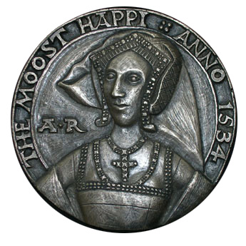 Princess Elizabeth (later Queen)The medal was struck in 1534 with Anne’s motto, ‘The Most Happi’ and the initials ‘A.R’ – Anna Regina, so we can be quite sure that it is her. These medals were usually struck to commemorate a great event, often a coronation but since the date does not tie in with this, Eric Ives believes that it was more likely to have been intended to mark birth of Anne’s second child in the autumn of 1534 that she miscarried. This theory also explains why few copies survive.