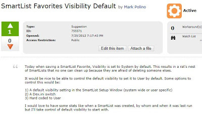 This feature is my suggestion and it should be easy to implement. I want the ability to control the default visibility of a new SmartList Favorite. Today it defaults to System (all companies, all users). I want the ability to default that to "User" to help reduce SmartList sprawl. I've been recommending the use of "User" for a while now. Especially after a number of companies have asked if it's possible to just delete all the Favorites and start over.
