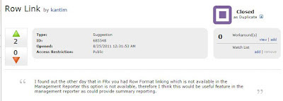 Suggestion 685548 covers adding FRx style Row Linking to Management Reporter