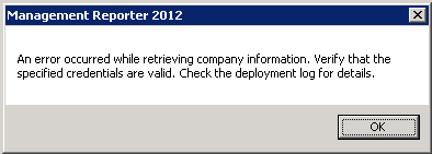iSolutions looks at a Management Reporter 2012 Issue with the error message "An error occurred while retrieving company information..."