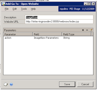 The basic scenario was simple. A client needed to pass an invoice number as a parameter to an internal web page connected to an imaging system. Clicking the GoTo would open a web browser, pass a URL with the embedded parameter and an invoice image would open.