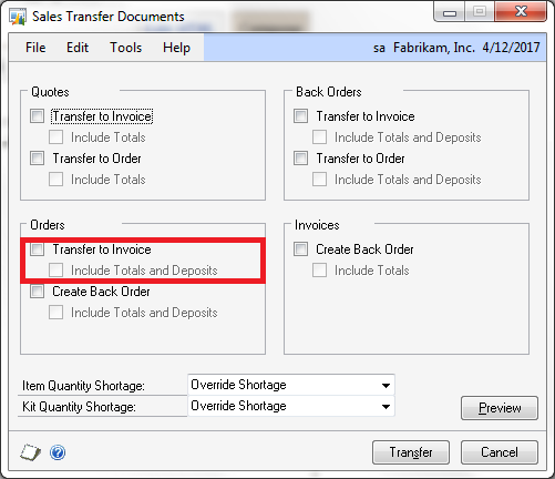 The Dynamics GP Blogster: Defaulting "Include Totals and Deposits" in Sales Transfer Entry with the Support Debugging Tool