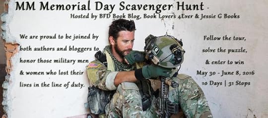 Welcome to the 2nd annual MM Memorial Day Scavenger Hunt! 10 Days, 31 Stops, and loads of prizes! The rules are simple: At each stop on the tour you’ll find a military themed picture with a word or words. Collect the words and figure out the secret phrase (HINT: It’s lyrics to a song). Once you think you have the correct phrase, enter it into the Rafflecopter at any of the stops. Three winners will be selected from all the correct phrases for the three prize packs. Good Luck and Happy