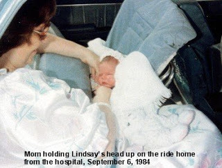 We did get more than we bargained for though. At birth, we knew something was physically wrong, and the day after, our fears were confirmed. The doctor came in to tell us that she had Arthrogryposis Multiplex Congenita. It is a disease that thankfully, is the worst it gets at birth, but poses severe limitations. Apparently she developed a virus about six weeks into the pregnancy, which arrested the development of muscles already growing and prevented other muscles from developing at all. To simplify, for Lindsay, this means she can't bend her arms or legs. There's much more to it, and if you're interested, click the link. For all its incarnations, Lindsay has what is considered classic AMC, all four limbs are affected.