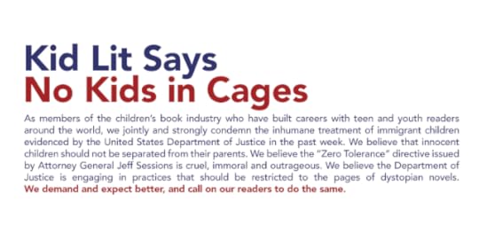 A vast swath of the kidlit community has come together in protest of this policy, publicly signing an open letter in opposition to the conditions under which these immigrant children are being held, and raising an incredible $173,533 so far for donation to Refugee and Immigrant Center for Education and Legal Services (RAICES) and a handful of other organizations providing services to immigrants and refugees at the border. You can read more and donate here.
