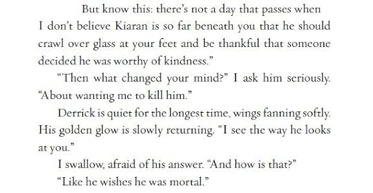 However, where some books about malevolent faeries focus on the mental and psychological horror, this trilogy so far is more about action and adventure, and I've enjoyed that. Aileana is daring and swashbuckling, and the action in this book is pretty much nonstop, from her escape from the faery realm to cheating death to defending the human outpost. And don't forget the romance—through it all, Aileana's feelings about Kiaran inevitably continue to grow. The more they grow, and the more she learns about his dark past, the more complicated things get…