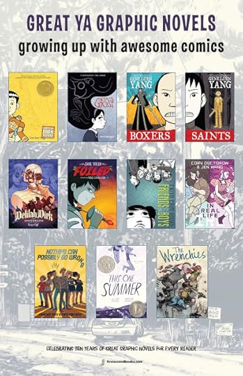 Can you believe it's been TEN years since First Second Books began publishing high-quality graphic novels for kids, teens, and adults? It's incredible but true. And at Finding Wonderland we're proud to have done our part in supporting their efforts over the years. Now, they're at 157 books and counting, and we are thrilled to take part in their 10-year anniversary celebration.This month is THE month, and so we're posting a special infographic provided straight from the publisher: a fantastic February reading list that focuses on great YA graphic novels--many of which have been reviewed right here. Below the infographic you'll find links to the reviews on our site. And, lastly, stay tuned for a special graphic novelist INTERVIEW (never say First Second didn't hook us up!) and more fun posts celebrating comics throughout their anniversary year. Congratulations to an imprint that has made it abundantly clear graphic novels can be great art and great literature!
