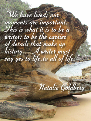 Photo taken by me, this past fall, at West Head, Ku-ring-gai Chase National Park, near Sydney, Australia. Quotation is from the always inspirational book Writing Down the Bones by Natalie Goldberg, a must-have for your bookshelf of writing inspiration. When you are feeling like what you have to say isn't important--remember that it is all our moments, all our details, all our selves that are, collectively, of critical importance. It's like one of those heinously complicated, thousand-piece jigsaw puzzles: even if it's just one single teeny piece of the sky missing, the whole scene will feel incomplete.