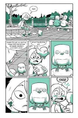 It's not just about coding, though. This book is about the perennially relatable theme of being the new kid in school—and it just happens to be a school where something SUPER CREEPY is going on. Why is the shed door padlocked? Why is the janitor so crabby about them going near it? (MUST be something interesting in there.) Why do all the birds have FOUR EYES? Hopper is confronted with all of these questions at the same time that she's trying to make new friends at her new school, where nobody seems to be amused by her cool robot voice. Luckily, she does manage to find a friendly face, and her new friend Eni even helps her decode the secret of the four-eyed birds. But when the two of them find out what's in the locked garden shed, all craziness breaks loose…very, very slowly…