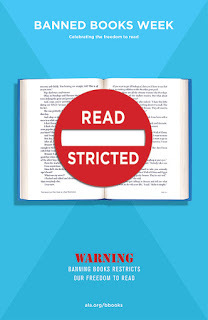 I almost missed the fact that this week is Banned Books Week, during which we can all thank our lucky stars that very, very few books actually make it from challenged to outright banned any more (although I feel like it's sort of over the top to title one's article "Banned Books Week is a Crock" in order to make that legitimate point). It sort of feels like saying we don't need the Voting Rights Act since we don't have racist prejudice any more. But ANYWAY, enough of my snark. There's plenty of fun to be had for readers during Banned Books Week, especially for readers who like the annual reminder that we've come such a long way, and still might have a little way to go.For one thing, you can check out the list of 2014's most challenged books, which includes (yet again) Sherman Alexie's Absolutely True Diary of a Part-Time Indian (Reasons: anti-family, cultural insensitivity, drugs/alcohol/smoking, gambling, offensive language, sex education, sexually explicit, unsuited for age group, violence. Additional reasons: “depictions of bullying”), which I reviewed here. The list also includes two graphic novels: Marjane Satrapi's wonderful Persepolis and Raina Telgemaier's Drama (which I think is on my TBR pile from ages ago...oops.)