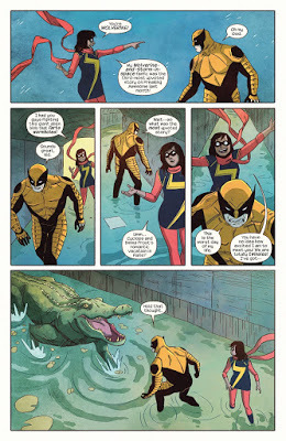 : Some time ago I reviewed the first collected volume of the new (and surprisingly awesome) Ms. Marvel comic, starring the rebooted main character Kamala Khan: an ordinary American teenage girl from Jersey City who just happens to be a Pakistani-American from a Muslim family. As someone who has Muslim family (my dad's side), I was thrilled to see a realistic, sympathetic, and positive portrayal of American Muslims, and in today's social climate it's something we need more than ever. So I was happy when my friend Ross lent me the next volume in the graphic novelization, entitled Generation Why, which collects issues #6-10 and covers Ms. Marvel's continuing adventures defending her city from the mysterious giant-robot-building villain known only as The Inventor.Peaks : There is so much to love about this comic series—and this is coming from someone who is admittedly not a huge fan of superhero comics in general or of Marvel characters in particular. Sorry; I guess I've just always been more of a DC girl (Vertigo, if you must know.). Anyway, one of the storylines I DO like in the Marvel universe is the X-Men, and, lo and behold, there was a cameo appearance by He of the Huge Ackman, the Wolverine himself. This was a very cool part of an even cooler plot arc in which we learn more tantalizing hints about Ms. Marvel's origins, get to see her charming, heartwarming, often hilarious interactions with her family, and watch her bring all kinds of entertaining and clever smackdowns on The Inventor's giant homicidal robots.