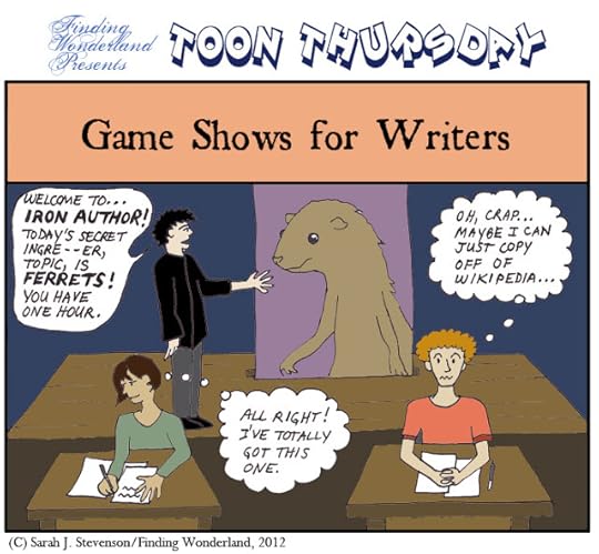 Going back to the grading fun, though...I've decided I want to start a Tumblr solely for the purpose of posting cartoons. Some of these will be my writing-related Toon Thursdays, but for quite a while now I've been collecting amusing student errors from essays, and I would also like to turn some of those into cartoons. Right now my struggles are twofold: 1) time (the perpetual problem) and 2) a title. I don't want to call it Toon Thursday, because it's too much pressure. It implies I'm going to post something regularly on Thursdays, and I've already established pretty conclusively that drawing a weekly cartoon may or may not happen.