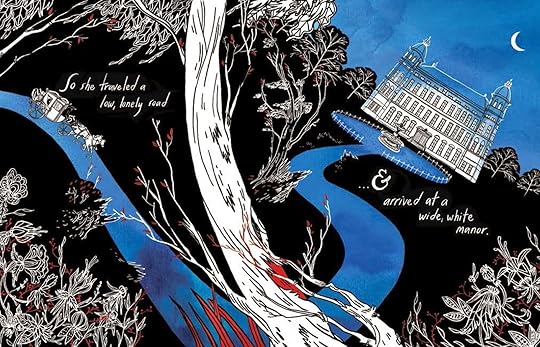 : For teens into dark and gothic literature, or fantasy, or retold fairy tales, this one is fantastic, in terms of both artwork and writing and overall style. The tales are well-written and creepy, echoing existing stories without feeling in any way derivative. The art and text were wonderfully integrated and just right for this set of stories: striking and evocative and perfectly interwoven. I loved the hand-painted look of the images and text, and the atmospheric feel of the pages that utilized blank space to great visual advantage. It really looks unlike anything I've seen before.