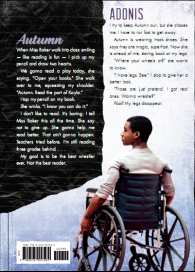 TSD: I really appreciate that there's talk with and about Autumn's parents in this book. Educational deficits are often generational... and how many of the teens reading this would know that? I can imagine some of them having an "Ohhhhhhhhh..." moment reading that her parents struggled too -- and the biggest drawback from not having that high school diploma is new jobs and moving and new jobs and moving and tearing down and building up over and over, never with enough time to really get anywhere or anything. This novel has that bit of realism that really expands the mind... Certainly if I were a rigid and perfect ...twerp like Adonis, it would enlighten me.