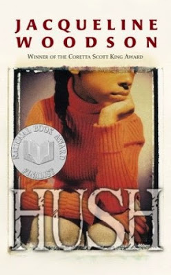 Whenever book awards are announced, we're intrigued -- and sometimes bewildered. There are SO many books published every year, it's hard to keep up with them based on buzz and word of mouth. Oftentimes many of the weighty "worthies" which are awarded are virtual unknowns to us -- but not this time. When this year's National Book Awards were announced, we cheered again for Jacqueline Woodson, one of the winningest authors we know. We're familiar with Jacqueline Woodson's work, much of which can be characterized with the words "quiet," and "intelligent" and "revealing." Despite the hype about other writers inventing realistic fiction, anyone who reads a Woodson book knows that's simply not true - and hasn't been for her entire career. Because much of what we'd read of Woodson's was a.) middle grade, and b.) picture books and c.) a long while back, we hadn't blogged more than one of her books here. We decided to read and tandem-blog a Woodson book - one we knew nothing about, one that hadn't won any particular awards - and randomly chose HUSH. As we explored this short, poignant book, we found it wasn't nearly as straightforward as it appeared. While we've done our best to outright avoid spoilers, some of the plot is revealed in a general fashion, so reader be advised. Without any other caveats, we invite you to join us as we discuss this book, which we discovered was a National Book Award finalist (Ms. Woodson seems to be inescapably award-winning - that's what we get for just going by sticker/lack of sticker on a cover). We're...
