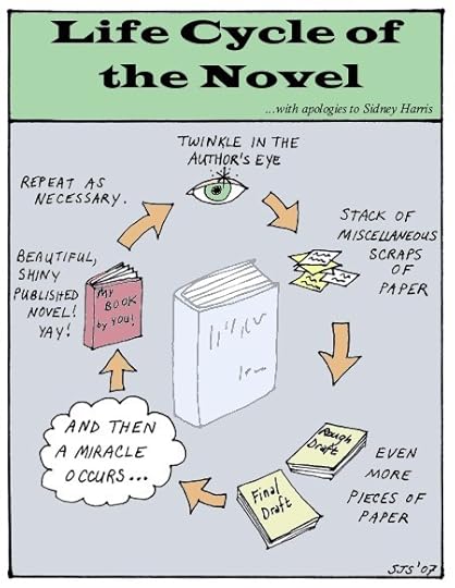 I actually do have a new cartoon in the works, but it's currently...a sketch on a miscellaneous scrap of paper. I posted this toon in honor of the fact that my novel-in-progress is still slogging through the quagmire of many pieces of paper, both large and small, and here's me hoping for a miracle!This work is copyrighted material. All opinions are those of the writer, unless otherwise indicated. All book reviews are UNSOLICITED, and no money has exchanged hands, unless otherwise indicated. Please contact the weblog owner for further details.