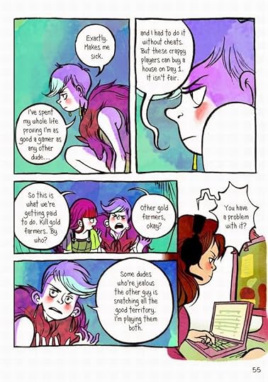 One day, Anda and her team are dispatched on a raid to go bust the chops of some gold farmers. Normally this would be a straightforward task, but then one of the gold farmers' avatar…talks to Anda. He's just another kid, sitting at a computer in China, but it doesn't take a long conversation before Anda realizes there's something really wrong and exploitative about the whole gold farming business. And that's when things start to get complicated for Anda, both online and IRL.