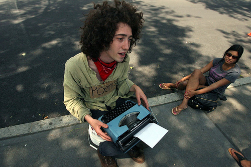 Robert Snyderman, "international editor" for Correspondence no. 3 (when he was abroad, working as an itinerant farmhand in Quebec) and street-poet-of-interest, was profiled recently by the New York Time's Fort Greene blog. Read all about it here (if you haven't already). Unfortunately, if you're tempted to hit the streets to find Robert peddling his verse (at his favorites haunts: the Bethesda Angel, the Brooklyn Bridge, or Brooklyn's flea & farmer's markets), you're out of luck. He's relocat...