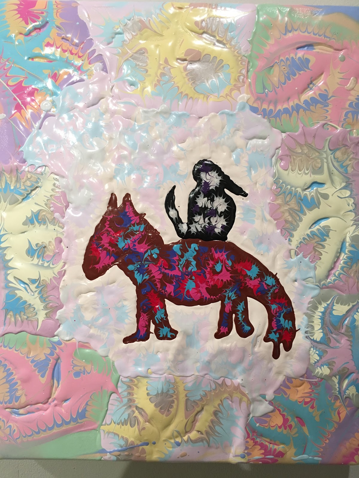 Fay pulls you upon a journey. Back to waka poems, or Ebru of the 10th Century were inscribed upon drifting sandpaper. Reminds of the Turkish marbling you tried to imitate, not knowing ancient Persians also used colorful clouded papers, only to find your hands muddied by the combination of red and green. Fay doesn’t use earthly umber or brown, he revels in joyful hues of merlot, magenta, lapis, and cerulean.