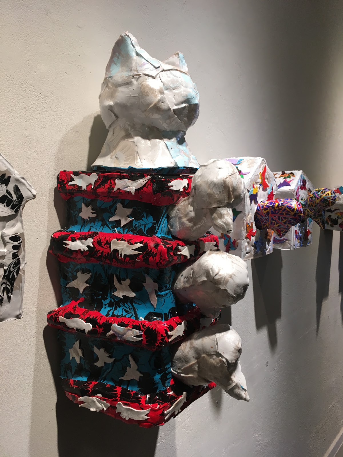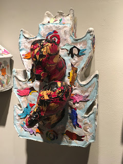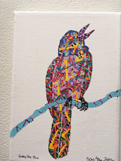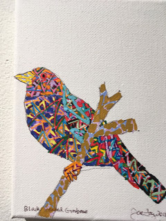Fay’s show includes drawings on paper with his signature zip tie language, works on canvas, fans, and birdhouse sculpture reliefs with beaks that scare off predators. Nature flows upon the canvas.Los Angeles welcomes back Joe Fay from his migration from Montana. The show is up until March 28th.