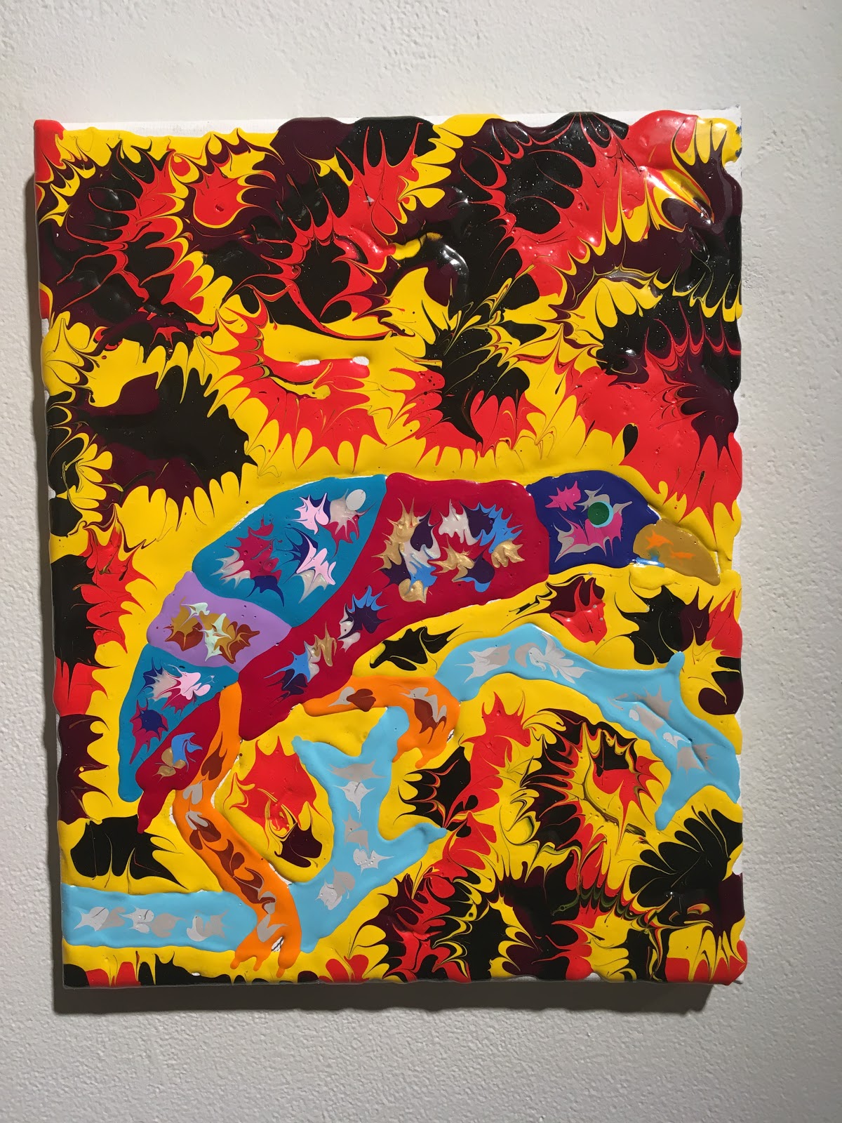 Video below shows the viscosity in the paint, plus clips from his thoughts live at the exhibition.