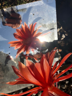 Monarch Poem: Milkweed in the garden scrubbed to the nubs. Caterpillars climb stems eating all that's green. People saving Monarchs we should be clubs. One sneaks in the house causing quite a scene. I've been raising monarch butterflies for a long time.When I lived on the ranch I had an acre of four varieties of milkweed, it haunts me that the new owner failed to water the plants. Some chrysalis were hidden in my potted plants when I movedand happily the butterflies followed me. In the video one sneaks into the house and I set her free with a paper cone. Bouquets for your enjoyment, a painting by Nancy Friedemann-Sánchez, and butterflies collected at a Hopi reservation.