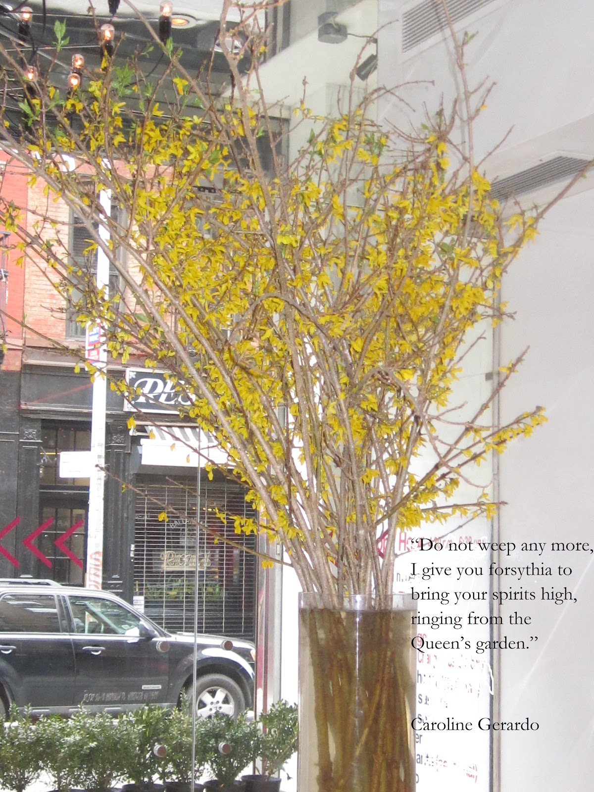 “Do not weep any more, I give you forsythia to bring your