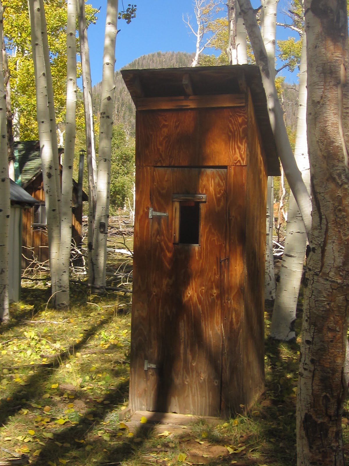 The photograph is a working outhouse, not mine, but surely feels like my mind today. I