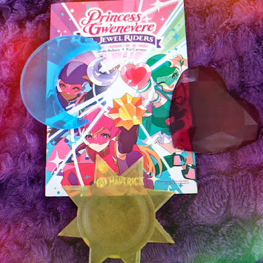 I was incredibly pleased with the new art style that Koi Carreon provides for the novel. The cover art showcases the bright and glittery nature of the show with a few modern updates that remain true to the essence of the characters' designs. While most modern-day reboots strive for darker and grittier versions that risk losing what made the original content so appealing, this story is grounded in the same version of Avalon that I grew up with. The colors inside the book are slightly duller than the ones on the cover, particularly Gwen's hair, but it didn't take a long time to get used to once I became engrossed in the new story from Jordie Bellaire. The novel is written for a YA audience, which is perfect for people who grew up with the show as well as teenagers and young adults who are being introduced to it for the first time. Although the plot gets a tad darker than the cartoon, its primary appeal is to people who prefer noblebright fantasy stories like the original show.