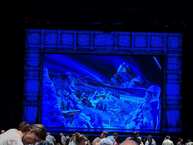 The film's themes of sisterly love, fear of the unknown, and staying true to yourself shine through beautifully in this production. Anna's awkward quirks are conveyed by how comfortable she is stripping down to her corset in public. A particularly questionable scene where she dances around in nothing but a towel from an earlier version of the show was cut from the production I saw. She has more onstage chemistry with Kristoff in the musical than she did in the film thanks to its added length, and Hans' Act 2 betrayal has a little more foreshadowing than the movie did. Elsa's complexities shine through with additional songs like "Monster" and improved writing during the scene in which Anna confronts her in her ice palace. The ending scene where Anna turns to ice is difficult to replicate in person for obvious reasons, but the use of the ensemble cast, projections, and clever costume changes help bring it to life.