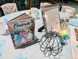 The best time of the year is back! Every year, the Cedar Park High School Choir gets together to write a brand-new show filled with princesses, songs, and games for its annual Princess Tea. This year's show, Ariel's Treasure Hunt, is the third one I attended since moving to the area. Many things remained the same such as the lobby set up with fairy tale photo ops, royal souvenirs, and the castle entryway, but there were plenty of surprises to be found during the performance as well. The female choral group, known as the Seasons, dominated this year's show with a wide array of Disney Princesses, while the male singing group, Pitch Black, cosplayed various Disney heroes, supported the princesses, and performed several group numbers during the intermission. I sat at the Cinderella table, which was adorned with an old storybook, an autographed note, and a clock stuck at midnight.