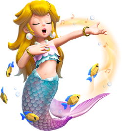 There are ten primary "roles" that Peach can transform into with a surprise bonus role at the end. Each play has two main acts and a finale in the basement, where she rescues its original Sparkla star. Though this game is clearly targeted toward girls, roughly half the roles that Peach transforms into are action-oriented, likely to avoid the same criticism that Super Princess Peach received for using emotion-based powers in the only female-led Super Mario Bros. title at the time. However, the non-fighter roles, which include a baker, a mermaid, a figure skater, and a detective have the most variety and visual appeal. My favorite transformation is a shimmery pink and blue mermaid that allows Peach to use her siren song to control the fish around her to rescue mer-Sparklas trapped in giant clamshells to perform in a concert.