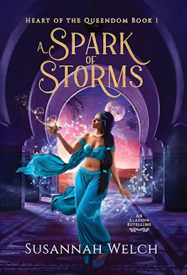 A Spark of Storms by Susannah Welch is a gender-bent retelling of "Aladdin." This is far from a new concept for me, so the obvious Disney influence on the cover was what first attracted me to this book. The Disney version of Aladdin is very different from the original fairy tale. The author uses that story as inspiration and makes it her own in a clever way while building a female-empowered fantasy world that gives a strong start to her Heart of the Queendom series. Though the feminist messaging of this book is a little overstated, it aligns perfectly with the archetype of Princess Jasmine feeling trapped by her culture and its treatment of women. In this case, it's a prince named Jaemin who feels trapped in a world where only female heirs can ascend the throne.