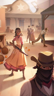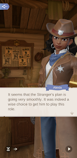 The latest visual novel in the Time Princess app is a western, which comes as a surprise since there are few female-oriented stories in that genre aside from a few old musicals like Annie Get Your Gun and Calamity Jane. What also came as a surprise is that Showdown in Glitter Rise is the least violent and most culturally sensitive western story I have seen to date with an extremely relatable protagonist who has a heart of gold, a black female sheriff, and a Native American companion. I've never thought of westerns as being particularly female-friendly, but this one rises to the challenge beautifully and fits right in with the other visual novels in this game that cover various cultures and historical time periods. The costumes are unique to the game's infinitely expanding wardrobe. There had not been any western wear provided as an option in one of its many events and stories up to this point.