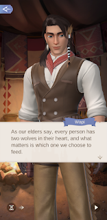 This visual novel has three diverse companions with only the slightest hint of romance. Alexia is a no-frills sheriff who is good at her job and well-respected among the townsfolk. She is close to Bella and is willing to let her get away with certain things that she wouldn't do for other people because she trusts Bella's good intent. Sam is my least favorite of the companions. He is ferociously protective of Bella and has an awful temper that comes off as dangerous at times. He is all brawn with minimal brain power and is wholly devoted to finding his father's killer. Wapi, The Stranger, is my favorite companion. He seems like the best romantic match for Bella. Though he is a lone warrior, he is not afraid to reveal his identity to her pretty early on and has an interesting backstory about how he left his tribe to travel the world with his mentor, making it difficult to fit in with either the cowboys or the Native Americans. He is attractive and polite, making him a good fit as a love interest.