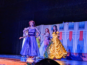 The ending of the show is the part that I think needs the most work. The next two paragraphs will contain spoilers, so you can stop reading here if you plan on taking a cruise on the Disney Wish in the near future and want to be surprised. After Ursula transforms into Vanessa and seduces Eric, the show turns into a big race to the finish line. Eric and Vanessa's wedding is barely touched upon before the shell gets broken, Ariel gets her voice back, Ursula steals the trident, and Ariel gets it back from her, saving the day. This was a huge sequence in the original film that was animated on a massive scale with super high stakes for Ariel, Eric, and all the merfolk of Atlantica. In this show, it's used as a quick lesson in girl power before moving on to the happy ending. As a blogger of all things princess, I am never against girl power, but I feel like the ending of this show did a sloppy job with it.