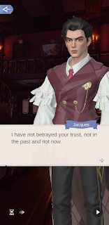 None of the three love interests in this visual novel particularly stood out to me. Sandra chases them down mainly to learn information about Dominic, so any romance that takes place beyond that is secondary to the main plot. Leo is her mysteriously tragic roommate who is stuck in an unfortunate situation. Alkin is the person who was closest to Dominic and has the answer regarding what happened to him. Learning the truth in Alkin's route actually felt a little anti-climactic because he comes right out and says it when you ask him. I was expecting a much bigger conspiracy to unfurl with more for the player to have to figure out. Jacques is the most interesting of the three love interests due to his alter ego as a roguish thief. He's a big flirt and has the most allure out of the three companions in the story.