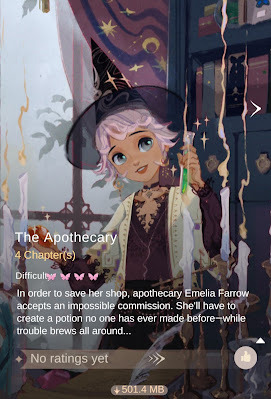 The Apothecary is a big story that requires a big time commitment and big resources. If you have been playing Time Princess for a while and are equipped to complete this visual novel, it is a worthy endeavor. I would not recommend it to newer players due to the high difficulty level. The worldbuilding and characters are top notch, especially Clement, one of the best love interests I have seen in the game so far. Depending on whose path you take, the story can range from silly to romantic to suspenseful. I liked the range of endings and how they all made sense with the overarching narrative. While it is easy to know whose path you are on, there were a few that I had trouble unlocking due to the randomness of the earlier decisions that must be changed to unlock them, so keep that in mind. Do you think this story was a worthy addition to Time Princess? Let me know in the comments!
