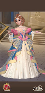 My favorite thing about this book is the fashions. I feel like Golden Age is peak Time Princess dress-up! It takes all the best elements from historical gowns and combines them in an aesthetically pleasing way that makes the player wish they were born in another time. Madame de Pompadour's formal dress is quite possibly my favorite gown in this game so far. It is a soft pastel lavender and silver brocade with pink fabric roses, bell sleeves, and a corset-style bodice. The overall look reminds me of the main dress in Barbie as Rapunzel . Minette's formal gown is also a lovely mix of historical fashion and modern aesthetics with its blue and white brocade fleur-de-lis patterns, stiff collar, and pearl accents. I also really liked her brightly colored casual dress that mixes pink, blue, and gold ruffles in a tasteful display of elegance.