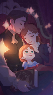 What threw me off the most about Embers was the setting. There are several references to contemporary movies like Shrek and Beauty and the Beast, but the characters' lifestyles feel old-fashioned, with little or no references to modern technology, and they still have medieval kingdoms. It was explained later that there are multiple dimensions in this world, yet it was never clear which dimension the story took place in at any given time. With all the references to Disney, I thought the Magic Kingdom referred to the Disney theme park until one of the characters explained that it is a fairy tale dimensions in this world. Another point of confusion is how Grace is somehow both Cinderella's stepmother and Henry's father, even though there are no references to Henry having two sisters and a stepsister as he lives alone with his father in the woods. In another chapter, Belle is revealed as Cinderella's mother-in-law with a cursed family line affecting Cinderella's children, which is when the story really veers away from the mother/son relationship between Grace and Henry.