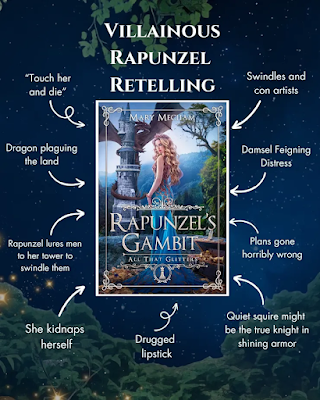 Rapunzel's Gambit by Mary Mecham is the second ARC I received from the upcoming All That Glitters mult-author series of fairy tale retellings. Though it is meant to be a retelling of "Rapunzel," it has a lot more in common with a book from 1990 called Dealing with Dragons, which was about a princess who was tired of her royal duties and ran away to live with a dragon. This version of Rapunzel is feisty, aggressive, and a bit spoiled. A far cry from an innocent maiden who was kidnapped as a child, she is raised by a wealthy king and believes she can do a better job running the kingdom than him due to his overtaxation of the people. It follows many of the modern princess tropes from recent Disney remakes.