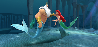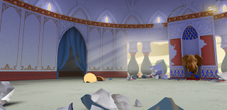 If you're not familiar with Match 3 games, they are a digital craze that was made popular by Bejeweled, in which the player must swap around digital jewels on the screen until they are able to match at least three in a row. If the player is matches more than three, the jewels will turn into a magical symbol that helps them clear the board faster. This simple concept has turned into a huge market for various movie and character-themed smartphone apps. Disney Princess Majestic Quest follows the same strategies as any other Match 3 game but also incorporates beautiful CGI environments for each princess and allows you to earn stars that help them restore their castles after a destructive storm. I enjoyed the CGI rendering of Jasmine's castle the most since I wasn't able to go inside her castle in the Kingdom Hearts games. Seeing the Sultan's throne room in full CGI gave me a new perspective of it that made me feel like I was there. Belle's story takes place in her iconic ballroom, which you can also visit in Kingdom Hearts 2. Ariel starts out in King Tritron's Throne room, which is featured in both Kingdom Hearts and Kingdom Hearts 2.