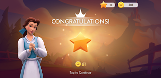 By now, you might be thinking that this is a sponsored post, but I can assure you that it's not. I just happen to love princesses, sparkly things, and cell phone games. Disney Princess Majestic Quest is a fantastic way to kill time if you're waiting in a long line or if you're just looking for something to do. I love the extra details they included, such as the magic wand that helps your progress when you make a lot of matches and the castle backgrounds that appear behind the game grid, but I especially love the story. After the palaces are restored, the game drops hints of a new story mission at a new location in the princess's world. I already completed Jasmine's story so far, but I can't wait to see what happens next for Belle and Ariel. I recommend this app for anyone who loves Disney Princesses and strategy games.