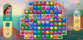 When I attended the D23 Expo last month, one of the things I was most excited about was the chance to play a demo of the new Match 3 cell phone app, Disney Princess Majestic Quest. The ads for this game taunted me on social media for months, dating back to before they had even selected a title. I took an online survey to share my opinion on which of three titles I thought would work best--Disney Princess Gems, Disney Princess Match, or Disney Princess Majestic Quest. It was a long wait before I could finally download the game on my own smart device, and I am pleased to say it was well worth it. The game was advertised to only include Jasmine and Belle at launch, even though there was a big Ariel billboard for it on display at the D23 Expo. When it became available, I was surprised to see that not only was Ariel included in the launch, but she was also featured the game's menu icon.