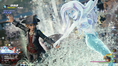 The only world I disliked more than Arendelle was Pirates of the Caribbean. Since I never saw the sequels, I had absolutely no idea what was going on story-wise. I did like that the world allowed you to swim around and explore underwater environments without having to worry about running out of breath. In that respect, it was similar to Atlantica from the first two games. It is also fitting that these underwater worlds are where you find the Ariel summon. For me, the problem was all of the surface missions you have to do after acquiring a ship. The game forces you to learn an entirely new battle system and then play a sort of minigame where you sail to different islands collecting crabs in order to make your ship strong enough for the final battle. I might have actually enjoyed exploring the islands if the game didn't force me to do so in order to complete the world. It also doesn't let you save at all until after you collect your first 300 crabs, which was particularly frustrating to me because I was ready to take a break by then.