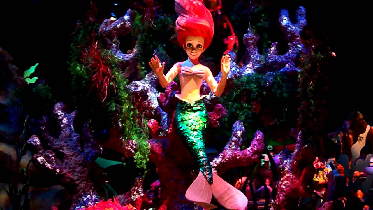 One of my favorite parts of the ride is watching Sebastian pop up in three different places in Ariel's grotto while she sings "Part of Your World." It's like an interactive game of hide-and-seek. A popular fan favorite is the hidden fish sculpture from the film The Incredible Mr. Limpet , which you can only see if you turn around in your ride vehicle at the end of the "Under the Sea" room. The ride made several updates over the years, including replacing Ariel's hot pink "ice cream swirl" hair from the "Under the Sea" section with something more realistic-looking and giving all of the characters realistic-looking doll hair during the second half instead of the sculpted hair they used initially. They also replaced the CGI projections of Ariel looking for human treasures and turning into a human with more traditional-looking animation. One of the great things about Disney rides is that they are always finding new and innovative ways to make them even better.