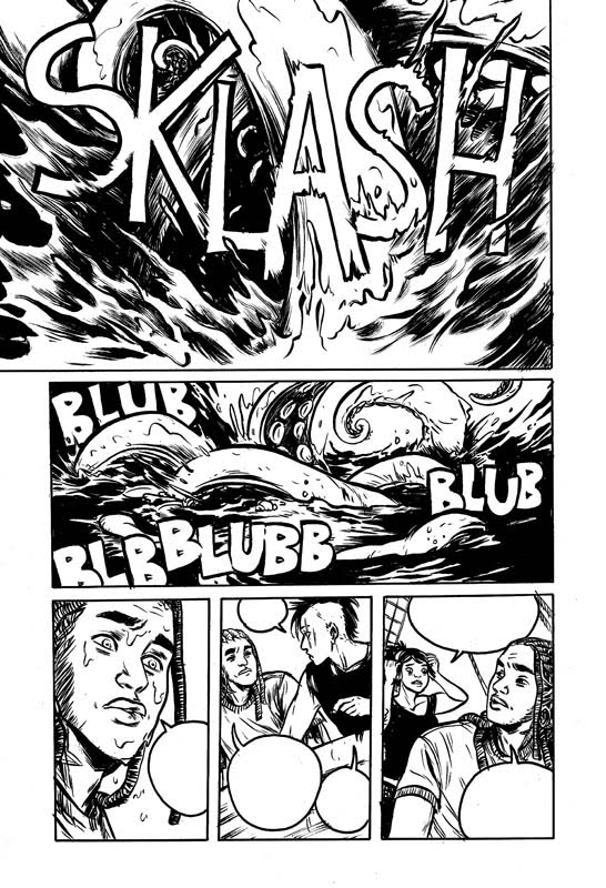 Pages 13-15 of East Coast Rising volume 2! I remember being really happy about the sound effects on the last panel of the 15th page. Rumble! It's funny to look back at something I drew back in 2007 or 2008 and think, man this still holds up a bit. I'm still mostly happy with these pages, but I think too much time has passed between them to go back to the comic.