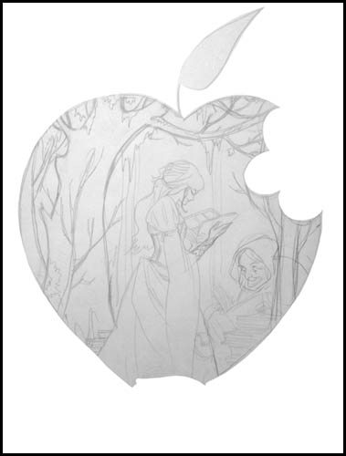 After doing a few thumbnails and narrowing the ideas down, I did some pencils. At this stage they were still pretty rough, but tight enough to work over. I knew I would be inking the figures, and painting over the background in photoshop so I didn't bother tightening the trees up much.