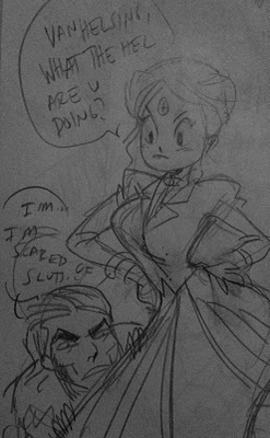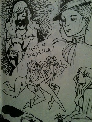 I read Dracula again last year and dedicated some space in my sketchbook to him and his sluts. These pictures are photos from my sketchbook, for the lovely Kate Beaton, who is currently enjoying some Dracula sluts.