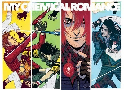 If you live in the UK, you might read this one magazine called Rock Sound! If so, you might have noticed that this week they included a huuuge A2 poster of My Chemical Romance's Danger Days that I drew! Check it out: